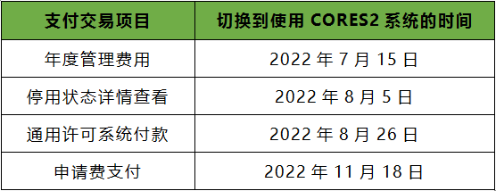 3.在舊的CORES已經(jīng)有注冊FRN號的還可以繼續(xù)使用,但到2022年8月5日會有紅燈狀態(tài)信息提示,要求到CORES2注冊新的RFN并綁定公司原來的Grantee Code號,到2022年8月26號后開始統(tǒng)一繳納年費;